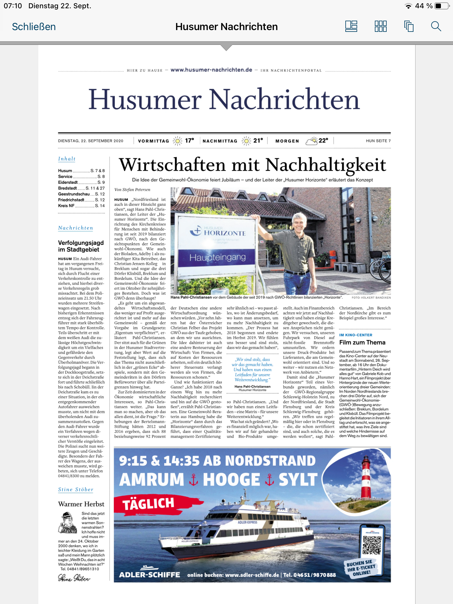 Husumer Horizonte im Friesenanzeiger Juni 2020